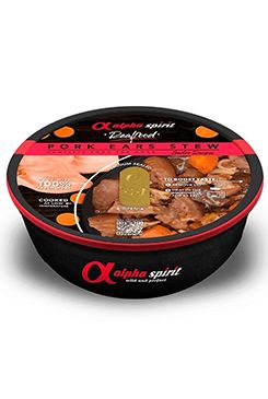 Dusené pomalým varením 100% čerstvé bravčové ucho v omáčke s hráškom, mrkvou a sladkými zemiakmi, varené pri nízkych teplotách, vákuované do znovu použiteľnej misky. pre správne množstvo krmiva použite kŕmnu tabuľku podľa veku, úrovne fyzickej aktivity a hmotnosti psa po otvorení uchovávajte v chlade po dobu až 24 hodín pre maximálnu chuť a zážitok vášho psíka odoberte viečko a misku ohrievajte v mikrovlnnej rúre po dobu 60 sekúnd. Čo je obal OPENVAC? tým zachováva všetky potraviny absolútne čerstvé. Pokročilá konzervácia – udržuje potraviny vo vákuu a vďaka absencii kyslíka zabraňuje oxidácii a predlžuje životnosť potravín. Inovatívny materiál – vhodné do mikrovlnnej rúry, tým premení každé jedlo na výnimočný chuťový zážitok. životnému prostrediu - obal je 100% recyklovateľný, bez plastov a na viacnásobné použitie v domácnosti. Zloženie: 97% čerstvé bravčové mäso v omáčke, hrášok, mrkva, sladké zemiaky, korenie. Analytické zloženie: hrubé bielkoviny 12,2%, hrubý tuk: 13,3%, hrubá vláknina: 0.7%, hrubý popol: 0.7%. (IU/kg): Vitamín A (3a672a) 8011, vitamín D3 (3a671) 513, vitamín E (3a700) 160. 3b201 (I:0,5).Metabolizovateľná energia na kg:1657 kcal - 6933 kj Kŕmna tabuľka: