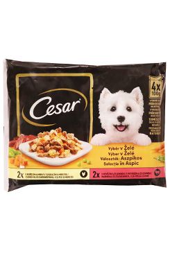 Kompletné vlhké krmivo pre dospelých psov, mäsový výber v želé. Zloženie: mäso a výrobky živočíšneho pôvodu (vrátane kuracieho* 4% a bravčovej pečene* 4% v každom kúsku**), zelenina (vrátane sušenej mrkvy 0.5%, ekvivalent mrkvy 4%), minerálne látky, výrobky rastlinného pôvodu, cereálie. *Prírodné ingrediencie. **Kúsok spravidla 46% produktu. Zloženie: mäso a výrobky živočíšneho pôvodu (vrátane hovädzieho* 4% a bravčovej pečene* 4% v každom kúsku**), zelenina (vrátane zmesi sušeného hrášku a mrkvy 0.8%, ekvivalent zmesi hrášku a mrkvy cereálie. *Prírodné ingrediencie. **Kúsok spravidla 46% produktu. Analytické zložky (%):proteín:8.0;obsah tuku:4.5;obsah anorganických látok:1.8;hrubá vláknina:0.50;vlhkosť:83.0. Doplnkové látky v 1 kg: Nutričné doplnkové látky: Vitamín D3: 230IU, Meď (Síran meďnatý pentahydrát): 1.3mg, Jód (Jodičnan vápenatý, bezvodý): 0.28mg, Železo (Sulfát železa (II), monoshydrát), monohydrát monohydrát):2.2mg, Zinok (Sulfát zinku, monohydrát):19.5mg/ Technologické doplnkové látky: Kasíová guma:1900mg.