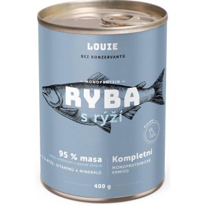 Šťavnaté kompletné krmivo v konzerve obsahuje 95% mletých rýb v pevnej zložke.