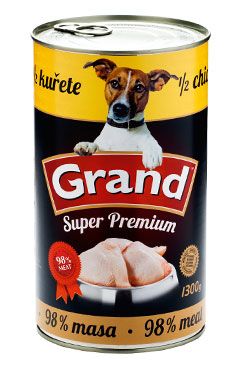 Konzerva Grand premium 1/2 celého kurčaťa je kompletné, prémiové krmivo pre psov, vytvorené z čerstvého mäsa bez chemických prísad.