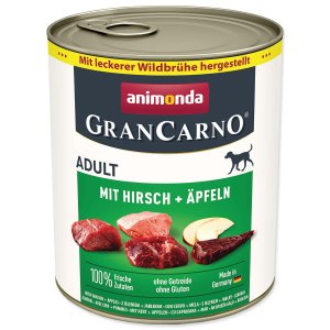 Kompletné krmivo pre dospelé psy Zloženie 49% bravčové (srdce, pečeň, pľúca, mäso), 29% zverinový vývar, 15% jeleň (mäso), 4% jablká, minerálne látky, požltový olej.