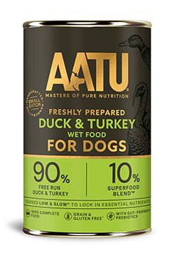 Kompletné superprémiové vlhké krmivo pre dospelé psy, obsahujúce 90% kačacieho a morčacieho mäsa. Super 8: 8 druhov zeleniny, 8 druhov byliniek, 8 druhov korenia.Vyrobené z čerstvého mäsa bez konzervačných látok.Bez obilnín, zemiakov a lepku. ZLOŽENIE: 90% kačica a morka (z toho kačica 30%, morka 30%, morčacie vývar 30%), zmes lesných plodov a byliniek: (brusnica, čučoriedka, moruša, čučoriedka, brusnica, petržlen, mäta pieporná, oregano, šal šípky, juka, aníz, žihľava dvojdomá, nechtík, senovka (grécke seno) a škorica, 2,54 %), batáty (1 %), mrkva (1 %), lucerna, hrach (1 %), paradajky (0,5 %), tapioka, jablká (0,5 %) (0,5 %), minerály, glukosamín (1000 mg/kg, chondroitín (1000 mg/kg), čakanka (100 mg/kg), morské riasy, spirulina, MSM (100 mg/kg). ANALYTICKÉ ZLOŽKY (%): Hrubý proteín, %1, Hrubý proteín vláknina 0,5 %, hrubý popol 2,5 %, vlhkosť 76 % DOPLNKY (NA 1 KG): Vitamíny: vitamín D3 200 IU, vitamín E 30 IU, Stopové prvky: zinok (monohydrát síranu zinočnatého) 15 mg, mangán (mónhydr (jodičnan vápenatý bezvodý) 0,75 mg.