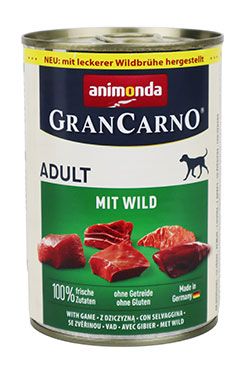 Animonda GranCarno Adultoptimálne vyvážené a chutné krmivo pre dospelého psa vo veku 1–6 rokovvyrobené z čerstvého mäsa a vnútorností - s viditeľnými mäsovými kúskyjemná chuť morčacieho mäsa - nefalšovaný pôžitokbez obilnín, bez lepku, bez sóje, bez cukrubez umelých farbív a konzerva (srdce, pečeň, pľúca, mäso), 29 % morčacie vývar, 15 % morčacie mäso (krk, žalúdok), minerálne látky, požltový olej. Analytické zložky: proteín 10,5 %, obsah tuku 5 %, vláknina 0,4 %, popol 2,5 %0 vitamínu D3, 1,4 mg monohydrát síranu manganatého, 25 mg síranu zinočnatého, monohydrátu, 0,5 mg síranu meďnatého(II) pentahydrátuHmotnosť: 400 g