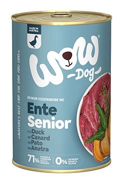 WOW Kačica s batátmi je vysoko chutné a ľahko stráviteľné kompletné mokré krmivo vhodné pre citlivé a staršie psy všetkých plemien so 71% obsahom mäsa a vnútorností od popredného rakúskeho výrobcu.