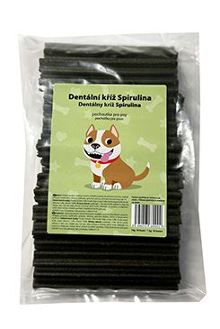 Doplnkové krmivo pre psov. Zloženie: Hydinový proteín, bravčový proteín vedľajšie produkty živočíšneho pôvodu, vedľajšie produkty rastlinného pôvodu, obilniny, spirulina, farbivá, arómy a konzervanty podľa ES. 1,2%, vlhkosť 10,8% Kŕmny návod: podávajte 1-3ks denne podľa veľkosti a váhy psa. Dbajte, aby mal pes vždy prístup k čerstvej pitnej vode. Skladujte na suchom a chladnom mieste. Nie je určené na ľudskú spotrebu. Dátum spotreby je uvedený na obale.