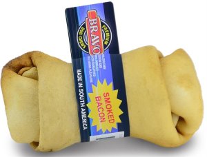 Veľmi obľúbená žuvacia maškrta z byvolej kože v tvare tyčinky s príchuťou slanina.