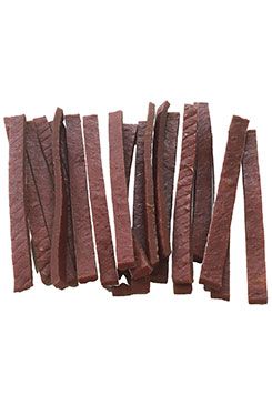 Mäsová pochúťka pre psy a mačky, hovädzie prúžky mäkké. Zloženie: 41,7% hovädzie, 6% škrob, 3% sorbit, 14% glycerín, 0,3% soľ, 25% hydina, 10% rast, proteínAnalytické zložky: 23% hrubý proteín, 8% hrubý tuk, 5% hrubý popol, zvieraťu pitnú vodu.
