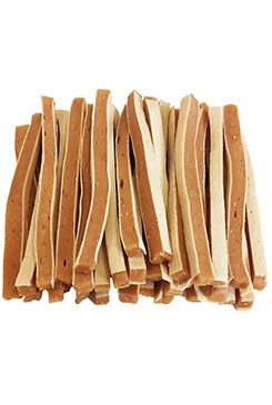 Mäsová pochúťka pre psy a mačky, kuracie prúžky mäkké. Zloženie: 85,2% kura, 7% koža, 2% škrob, 7,6% glycerín, 1,2% rast. proteín, 3,8% sorbit, 0,2% soľAnalytické zložky: 40% hrubý proteín, 2,5% hrubý tuk, 3,5% hrubý popol, 1% hrubá vláknina, 23% vlhkosť Zaistite zvieraťu pitnú vodu.