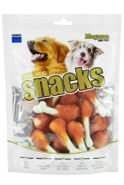 Mäsová pochúťka pre psy a mačky, rybička omotaná kuracím mäsom. Zloženie: 64,7% kura, 14% ryba, 5% škrob, 6% glycerín, 8% rast. proteín, 2% sorbit, 0,3% soľAnalytické zložky: 55% hrubý proteín, 4% hrubý tuk, 6% hrubý popol, 1% hrubá vláknina, 18% vlhkosť Zaistite zvieraťu pitnú vodu.