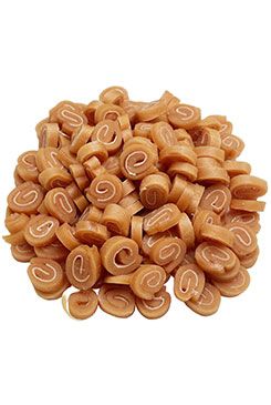 Maškrta pre psov, opasky s kuracím mäsom a treskou. maškrty pre psypásky s kuracím mäsom a treskouobsah kuracieho mäsa 65 %, obsah tresky 18 % neobsahuje lepok0 % pridaného cukruvoňavá a chutná mäsová pochúťka (65 %), treska (18 %), sójový proteín, zemiakový škrob, glycerín, minerálne látkyAnalytické zloženie: Obsah tuku 3,5 %, Obsah vlhkosti 34,0 %, Obsah bielkovín 29,0 %, Hrubý popol 3,0 %, Hrubá vláknina.