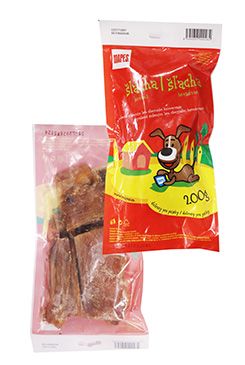 Prírodná sušená pochúťka pre psov so zvyškami mäsa. Čistí zuby, posilňuje ďasná a priaznivo pôsobí na črevnú flóru.