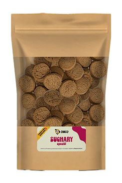Skvelá odmena. Znížený obsah cukru v krmive napomáha zdravému životu zvieraťa. Psie piškóty sú vhodnejšie ako detské, obsahujú menej cukru a kvasnice, ktoré sú zdrojom vitamínu B, pozitívne pôsobiaceho na správne fungovanie zažívacieho traktu. Zloženie: obilniny, vajcia, cukry, minerálne a doplnkové látky Analýza: proteín 8%, tuk 1,5%, vlhkosť 10%