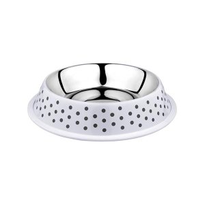 Praktická nerezová miska s gumovým okrajom, ktorá zabráni sklzu po podlahe.