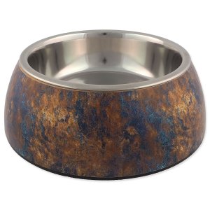 Miska na krmivo alebo vodu pre psov a mačky je vyrobená z nerezovej ocele s medenou povrchovou úpravou.