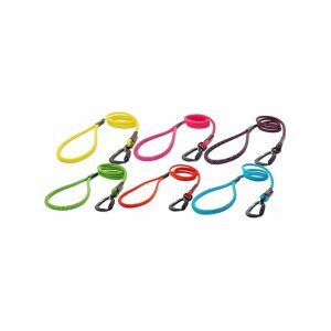 Vodítko z odolného nylonu s rukoväťou z umelej kože má chrómovanú karabínu au rukoväte D-krúžok umožňujúci pripevnenie ďalších predmetov.