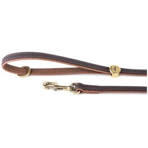 Vodítko pre psov z kolekcie Bilbao z jemne spracovanej hnedej kože s povrchovou úpravou z anglickej mosadze.