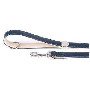 Vodítko pre psov z kolekcie Hermitage z pravej talianskej modrobéžovej kože s bielou bronzovou povrchovou úpravou.