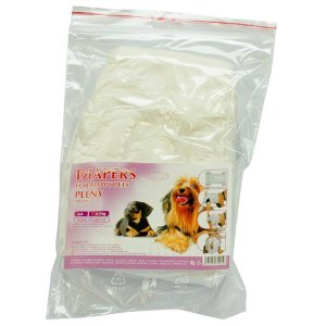 jednorazové uľahčí hygienu sučky pri inkontinencii, v období hárania i po operáciách, kedy sa sučka nemôže venčiť prirodzeným spôsobom vhodné aj pri dlhom cestovaní, kedy nie je možné sučku vyvenčiť dobre padnú vďaka elastickému prúžku v páse a na nohách plienka sa pripevní na obojstrannými lepiacimi páskami a potom dobre drží miestes otvorom na chvostvysoko absorpčnévždy je dôležité správne zvoliť veľkosť plienky podľa veľkosti psamateriál: netkaná textília (polyester)veľkosť: XS–Sobvod pása: 20–28 cmbalenie: 12 ks