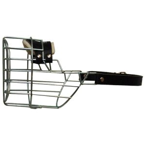 Kovový náhubok s upínacími remienkami z pravej kože.