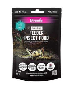 Arcadia EarthPRO-Insect Fuel má svoj základ vo lucerne, pestovanej a zberanej v Anglicku, obohatenej o plné spektrum vitamínov, minerálov a včelieho peľu.
