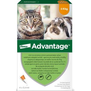 Advantage spot-on je vhodný na liečbu a prevenciu napadnutia blchami pre mačky a králiky do 4 kg.