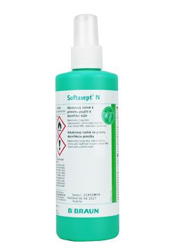 Softasept® N bezfarebný - alkoholový prípravok na dezinfekciu pokožky pred operačnými zákrokmi, injekciami, punkciami, katetrizácia, odbery krvi, očkovaním pod.