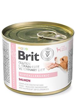 Brit Veterinárna bezobilná diéta - Hypoalergénna receptúra pre psov - LososKompletné diétne krmivo pre psov – zníženie intolerancie určitých komponentov a živín. HYPOALERGÉNNE ZLOŽKY plemien, ktorí majú citlivé reakcie na krmivo.