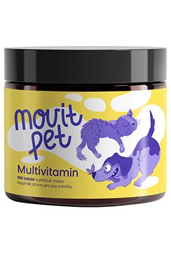 Komplexné doplnkové krmivo MOVit PET Multivitamín pre psy a mačky s obsahom všetkých dôležitých vitamínov skupiny B, vitamínu A, C, D3 a E.