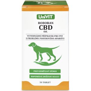 ROBORAN CBD tbl. je schválený veterinárny prípravok, vo forme komplexného tabletovaného prípravku využívajúci široké spektrum účinkov prírodných kanabiodiolov, hesperidínu a MSM.