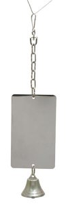 Závesná kovová hračka pre vtáky - zrkadlo so zvončekom.