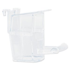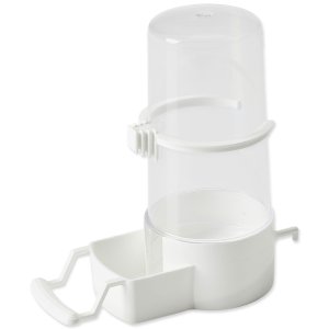 Plastové krmítko s bidielkom. Priemer: 7 cm, výška 16 cm.