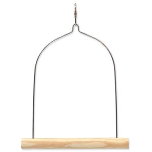 Drevená hojdačka s kovovým závesom.