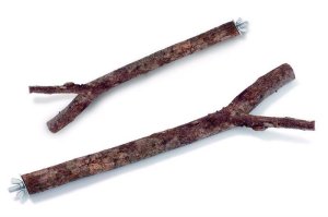 Prírodné drevené bidielko v tvare "Y" s kovovým úchytom na klietku.