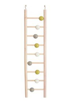 Hračka do klietok a voliér vyrobená z pevného a odolného materiálu proti okusu. Vhodná pre veľké druhy papagájov. Drevené časti sú farbené zdravotne nezávadnými farbami.