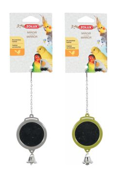 Zrkadlá sú veľmi obľúbenou hračkou u všetkých exotov. Toto zrkadlo je vo farebnom rámčeku s dvoma zvončekmi. Rozmery: 6,7 x 13 cm Farba: rôzne farby