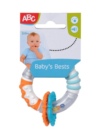 Hrkálka krúžok na uchopenie, cit a hrkálku. Dĺžka 9 cm.