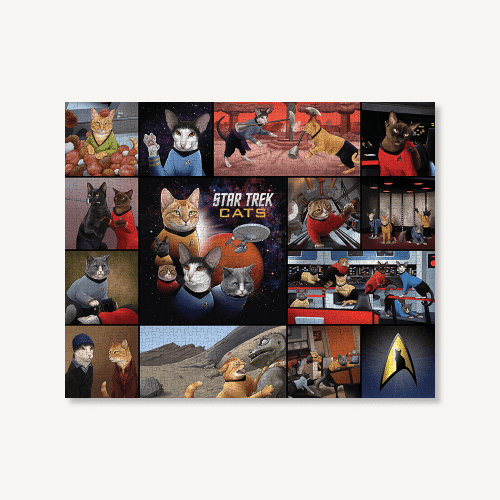 Preskúmajte galaxiu s mačacou posádkou z lode USS Enterprise. Toto puzzle oslavuje klasickú sériu Star Trek s posádkou mačiek! 1000-dielne puzzle obsahuje milované ilustrácie Jenny Parksovej, ktoré pretvárajú posádku USS Enterprise ako mačky, čo je ideálne pre fanúšikov všetkých vekových kategórií, aby si spoločne užili skladanie. TM & © 2021 CBS Studios Inc. Star Trek a súvisiace značky a logá sú ochranné známky spoločnosti CBS Studios Inc. Všetky práva vyhradené. Ideálne pre fanúšikov Star Treku aj fanúšikov mačiek od 9 rokov. Hlavné vlastnosti: Obsahuje 1000 dielikovPotlačené netoxickými atramentmiPrémiová kvalita puzzleJednotlivé dieliky do seba presne pasujúRozvíja logické myslenie a motorikuIlustrácie Jenny Parksovej