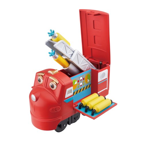 Lokomotíva s transformačnou funkciou. Po stlačení vrchnej časti lokomotívy sa automaticky vysunú rôzne pracovné pomôcky.