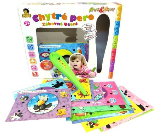Chytré pero s kartami je interaktívna hra, ktorá deti zaujme a zábavnou formou ich mnohému naučia. So šikovným perom je učenie ľahké a zábavné. Pero vždy oznámi správnu odpoveď rozsvietením zeleného svetielka alebo červeným svetielkom odpoveď zlú. Balenie obsahuje 100 strán výukových kartičiek - nájdi číslo, nájdi chýbajúci dielik, ktoré písmeno chýba, koľko je na obrázku hodín..? Pero vydáva zvukové efekty, svetelná signalizácia správnej či zlej odpovede, nastavenie úrovne hlasitosti. Hlavné vlastnosti: výukové karty sú v češtineobsahuje 100 strán výukových kartičiekučení zábavnou formouprevádzka na 2 batérie AAA