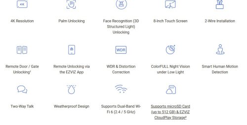 8" farebný dotykový displej funguje ako centrálna ovládacia jednotka pre celý zabezpečovací systém EZVIZ – vrátane kamier, zámkov a detektorov. Vďaka Wi-Fi 6 je zaistená stabilná konektivita v celom dome. Systém podporuje aj notifikácie, záznamy na microSD kartu aj cloudové úložisko .