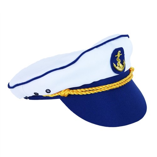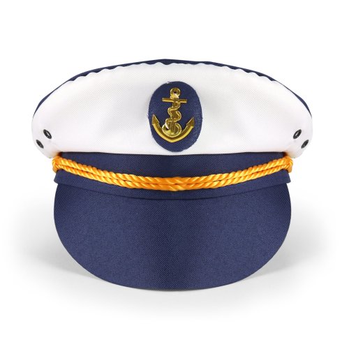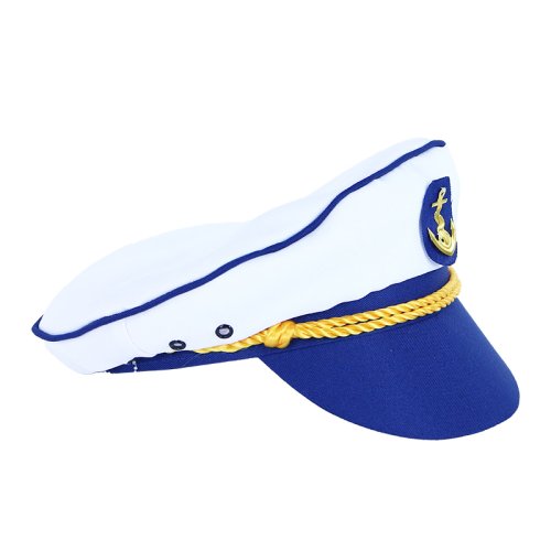 Parádna biela čiapka s modrým šiltom a lemovaním v štýle námorníka pre dospelých! Tento senzačný kúsok je zdobený zlatým odznakom na prednej strane čiapky. Staňte sa hviezdou karnevalového večierka vďaka tejto neprehliadnuteľnej čiapke a ohromte tak všetkých svojich priateľov!