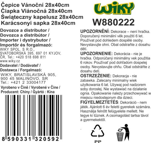 Veselá Santovská čiapka s brmbolcom. Veľkosť: 28x40cm