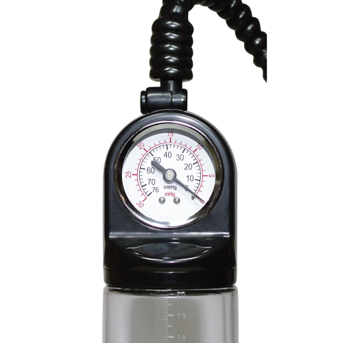 Vákuová pumpa pre mužov s transparentným cylindrom, tlakomerom a úchytom na pumpovanie. Pumpa, ktorá vášho miláčika postaví do pozoru. Na ukazovateli tlaku s reguláciou môžete tlak presne kontrolovať a meniť. Meracia stupnica vám ukáže aký veľký je váš penis. Dĺžka cylindra je 30 cm, hĺbka 22 cm, priemer 6 cm a so silikónovou manžetou 3 cm. Po použití pumpy začne okamžite stúpať erekcia.