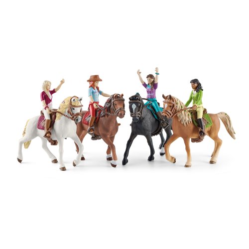 Čiernovláska Sarah & Mystery od Schleich® z Horse Club sú nerozlučné. Keď Sarah a jej arabská kobyla cválajú po poliach, brodia sa potoky alebo sa túlajú lesom, splynie ich srdce v jedno. Figúrka Sarah nosí jazdeckú helmu, je plne pohyblivá a dokáže svojmu koňovi nasadiť uzdu, opraty aj sedlo. Figúrka Sarah vie stáť aj sedieť v sedle. Žltý náramok na jej paži ukazuje, že je členkou Horse Clubu. Sada obsahuje: 1x figúrka Sarah (s pohyblivými kĺbmi), 1x kôň, 1x jazdecká prilba, 1x sedlo, 1x uzda s oťažou, 1x náramok na ruku. Figúrky Schleich sú mimoriadne detailné, láskyplne maľované a umožňujú deťom hrať sa a zároveň sa učiť. Nevhodné pre deti do 3 rokov. Rozmer balenia: 15 x 18 x 8,2 cm. Odporúčaný vek: 5-12.