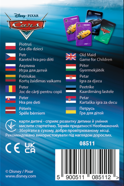 Seznam varování týkajících se bezpečnosti karetních her vychází z požadavků nařízení (EU) 2023/988 o obecné bezpečnosti výrobků (GPSR): * Dávejte pozor na ostré hrany karet, které mohou způsobit poranění. Věnujte zvláštní pozornost stavu karet, zejména pokud jsou staré nebo poškozené. * Nedovolte malým dětem hrát si s kartami bez dozoru. Existuje riziko spolknutí malých částí nebo udušení. * Chraňte karty před vlhkostí a zaplavením. Mokré karty mohou být kluzké a obtížně se drží, což zvyšuje riziko nehod. * Vyhněte se ohýbání nebo lámání karet. Poškozené karty mohou představovat nebezpečí, zejména pokud jsou spolknuty nebo pokud se ostré prvky oddělí od karty. * Při míchání karet buďte opatrní. Nesprávné míchání může vést k poškození karet nebo poranění rukou. * Pravidelně kontrolujte stav karet, abyste se ujistili, že nejsou poškozeny nebo zničeny. Poškozené karty je třeba vyhodit, aby se předešlo možným rizikům. * Po skončení hry uchovávejte karty na bezpečném místě, mimo dosah dětí a zvířat. * Pokud jsou karty určeny pro určitou věkovou skupinu, ujistěte se, že hráči splňují věkové požadavky. * V případě výskytu jakýchkoli zdravotních problémů během nebo po použití karet se poraďte s lékařem. * Pokud karty obsahují elektronické součástky, např. Baterie, postupujte podle bezpečnostních pokynů. Baterie mohou být nebezpečné v případě požití.