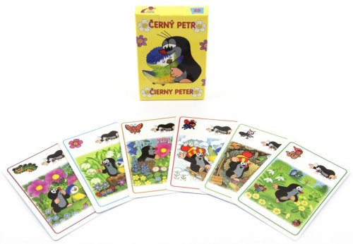 Hracie karty pre detskú hru Čierny Peter s obrázkami z obľúbeného kresleného seriálu Krtko.