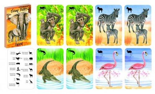 Hracie karty pre detskú hru Čierny Peter s obrázkami zvieratiek zo safari. Všetky karty sa rozdajú zúčastneným hráčom tak, aby nebolo vidieť, kto Čierneho Petra dostal. Následne hráči odložia rovnaké dvojice kariet na stôl (podložku) a zvyšné karty si rozložia v ruke. Hráči si ponúkajú karty v kruhu a tvoria rovnaké dvojice. Prehrá ten, komu zostane v ruke Čierny Peter. Pre obmenu je možné si s kartami zahrať aj pexeso.