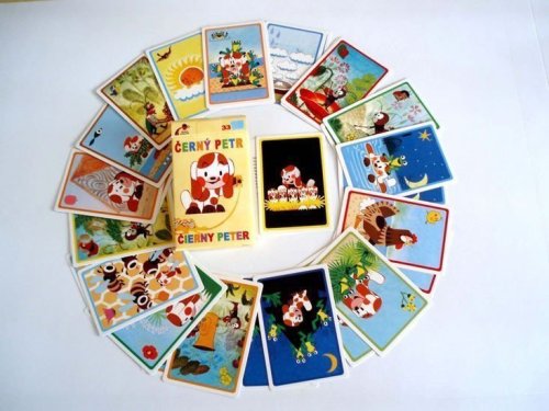 Detské karty pre hru zvanú "Čierny Peter" s obrázkami šteniatka od ilustrátora Zdeňka Millera. Krabička obsahuje aj podrobný návod a karty majú na rubovej strane mierne zdrsnený povrch pre lepšiu manipuláciu s nimi.