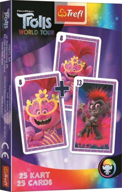 Detská kartová hra Čierny Peter s obrázkami animovaných Trolíkov. Všetkých 25 kariet sa rozdá zúčastneným hráčom tak, aby nebolo vidieť, kto Čierneho Petra dostal. Následne hráči odložia rovnaké dvojice kariet na stôl (podložku) a zvyšné karty si rozložia v ruke. Hráči si ponúkajú karty v kruhu a tvoria rovnaké dvojice. Prehrá ten, komu zostane v ruke Čierny Peter. Balenie: 25 kariet v papierovej krabičke