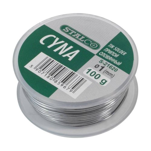 Spájkovací cín STALCO je k dispozícii v malom, praktickom balení obsahujúcom 1milimetrový drôt.